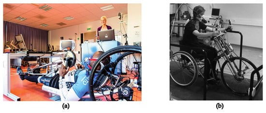 - Kraaijenbrink, C.; Vegter, R.; de Groot, S.; Arnet, U.; Valent, L.; Verellen, J.; van Breukelen, K.; Hettinga, F.; Perret, C.; Abel, T.; et al. Biophysical aspects of handcycling performance in rehabilitation, daily life and recreational sports; a narrative review. Disabil. Rehabil. 2021, 43, 3461–3475. [Google Scholar] [CrossRef]