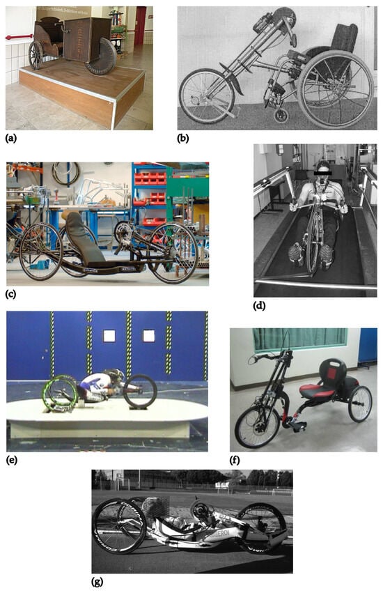 Furthermore, handbikes also play an important role in rehabilitation. As exposed in the work of Nooijen et al. [], wider physical benefits like greater power production and maximal oxygen consumption have been detected in the SCI subject when handbike training was added to the traditional rehabilitation program. In addition, a cross-sectional study by Van Der Woude et al. [] reveals that handcycling is an effective intervention, which is able to maintain an active lifestyle and enables preventing secondary health conditions like pressure sores, urinary tract infections, osteoporosis, upper-extremity pain and cardiovascular diseases.