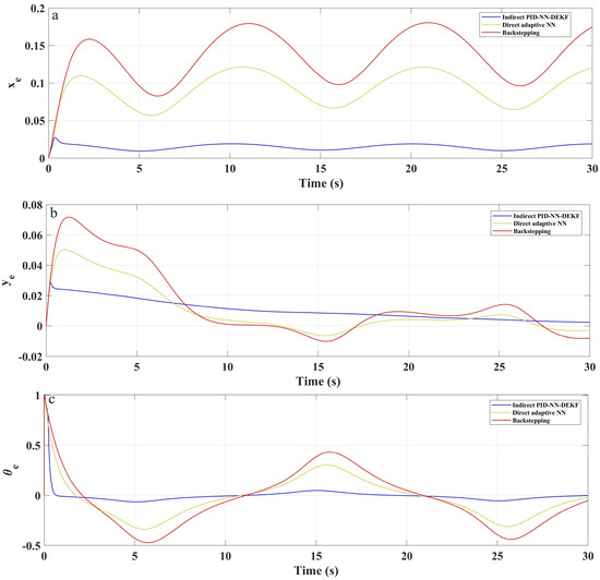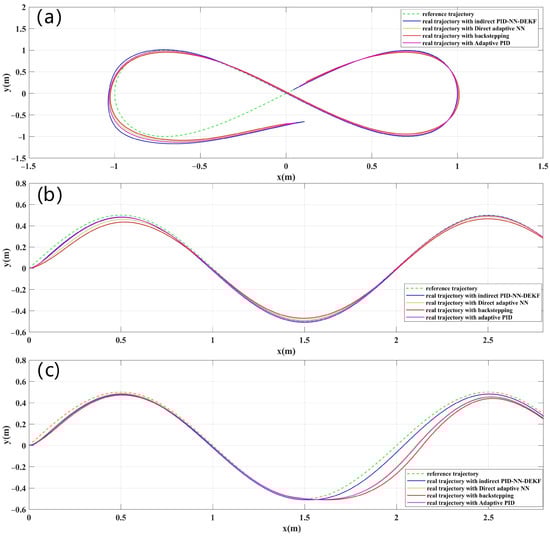 Tracking errors for (a) , (b) and (c) for lemniscate trajectory.