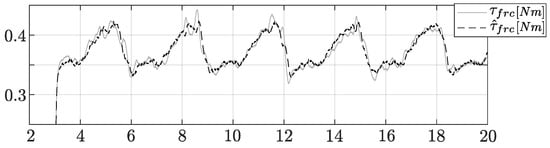 where the sine and cosine functions are shortened as s and c, respectively. Friction identification results are shown in Figure 9 where is the measured friction torque. The fitting accuracy achieved is 89.95%.