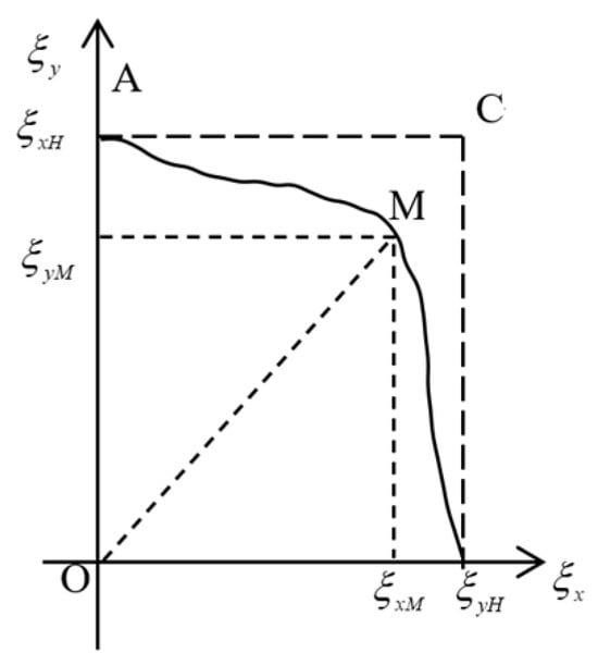 The standardized stresses  and  are used as the abscissa and ordinate to establish a rectangular coordinate system, as shown in Figure 1. In general, the stress boundary curve  defined in the test can be represented by the equation .