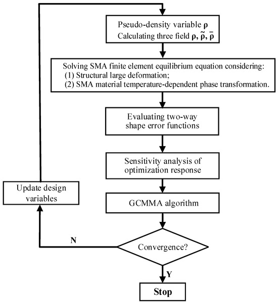 Flowchart for topology optimization of two-way shape-morphing SMA actuators.