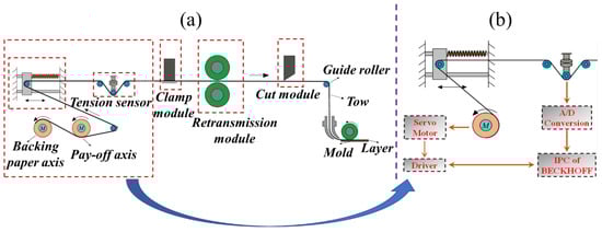 (a) Schematic diagram of the automatic fiber placement. (b) Schematic diagram of the tension control system.