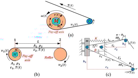 Figure 2a shows the schematic diagram of the pay-off axis working. The motor used for the pay-off axis was a permanent magnet synchronous servo motor (PMSM), which directly drove the pay-off axis. Therefore, the pay-off axis and servo motor were modeled as a whole in this paper. The space magnetic field distribution was sine, and the magnetic circuit’s core magnetic saturation and nonlinear characteristics were ignored. Thus, according to the torque balance equation, the equation of motion of the pay-off axis was obtained as follows: