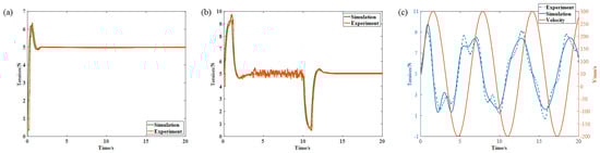 The validity verification of the model. (a) Tension step model validation; (b) Velocity step model validation; (c) Velocity sinusoidal input model validation.