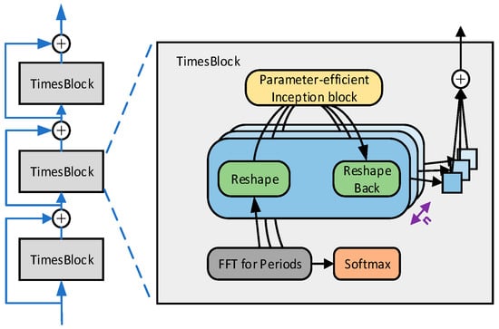 TimesNet consists of multiple TimesBlock modules stacked using residuals, and its structure is shown in Figure 2.