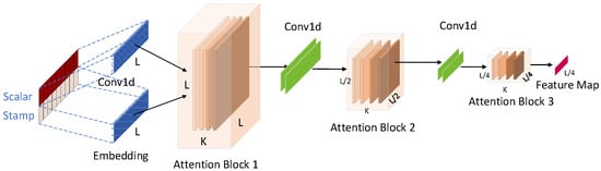 where represents the Attention block, which contains the critical operations in the multi-head ProbSparse Self-attention and Attention block, Conv1d represents the one-dimensional convolution operation on the time series, and through ELU as the activation function, and finally, the maximum pooling operation.