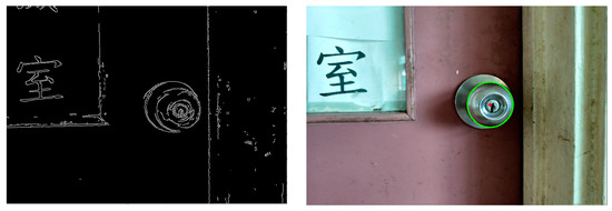 Edge detection uses a threshold, and the doorknob is detected; the Chinese character on the left part of the figure is the room’s name.
