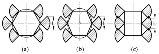 Usually, the arrangement of the legs of a hexapod robot is connected in three layouts: circular, elliptical, and rectangular, as shown in Figure 1. When the swing angle of each leg is the same, the leg needs to sweep over the same size of the sector area, so two factors need to be considered in the design: