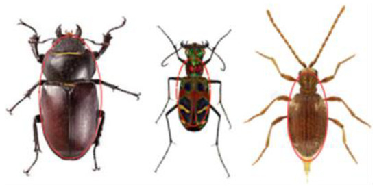 The lunar exploration robot should minimize its size and weight as much as possible, with an elliptical layout having a smaller volume compared to a circular layout. And, the elliptical layout not only ensures that the legs do not interfere with each other, but also has a large swing space. In addition, as shown in Figure 2, the leg distribution of hexapod insects in nature is often elliptical, so the final decision was made to adopt an elliptical layout. The final 3D model of the bottom plate design is shown in Figure 3.