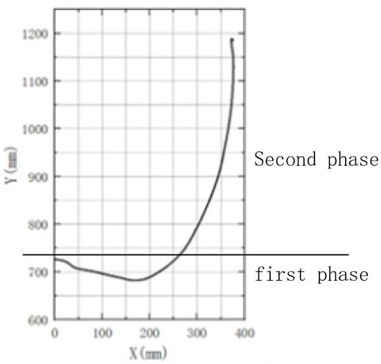 Data for the standing up motion came from the HDM05 database’s sit-to-stand action [22]. The HDM05 motion database, recorded with VICON motion capture device, contains 70 different types of actions covering most of the movements in daily life and is widely used in medical, rehabilitation, and sports fields. Firstly, the motion file in Mokka was opened, and the upper limb’s motion coordinates were extracted, and exported as a CSV file for a more precise analysis of the standing action. The second-phase data of the STS motion were imported into Origin software, and the corresponding scatter plot was created, where the upper limb’s motion trajectory is depicted in Figure 1. We approximated the second-phase motion as a linear motion for further study. By linearly fitting the trajectory of the second-phase motion, we obtained an approximate angle of the upper limb’s movement. The angles obtained from 10 sets of STS motion capture data were taken, as shown in Table 1. The average of these angles was calculated, resulting in 73.7°. This average angle aligned with the natural standing motion of most healthy individuals. Therefore, we chose this angle as the elevation angle for the STS movement assistive device.