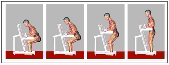 - Yang, J.; Ozsoy, B. Three Dimensional Unassisted Sit-to-Stand Prediction for Virtual Healthy Young and Elderly Individuals. Multibody Syst. Dyn. 2020, 49, 33–52. [Google Scholar] [CrossRef]
