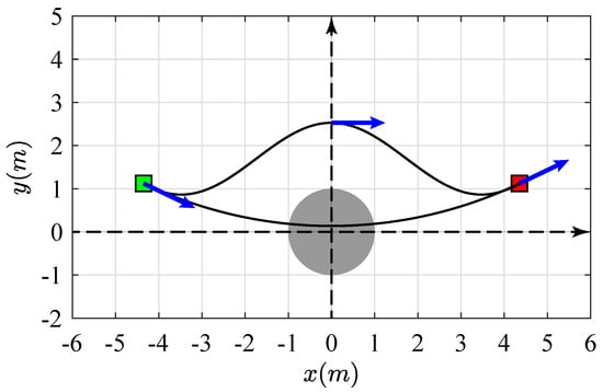 In trajectory re-planning, to accommodate diverse operational contexts, multiple waypoints may be employed, and the trajectory’s configuration can be tailored to the situational requirements. Standard trajectory forms encompass linear, arc, and sinusoidal paths, among others, or a hybrid of these shapes. This approach is analogous to the generation of Dubins paths [].