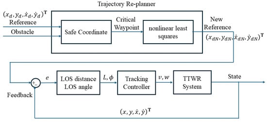 The present paper endeavors to surmount the limitations inherent in these aforementioned strategies by proposing a novel LOS control law. This newly formulated law is characterized by its structural simplicity, obviating the need for input transformations, and simultaneously enhances the transient performance of the closed-loop system. Furthermore, this study introduces a trajectory re-planning scheme predicated on nonlinear least squares. This scheme is adept at navigating around static obstacles, thereby augmenting the TTWR system’s operational robustness and adaptability to complex environments.