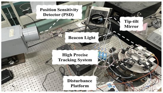 The primary function of this apparatus is to ensure that the light signal remains centered on the position-sensitive detector. To achieve this, the disturbance platform replicates external disturbances, applying them to the electro-optical tracking system (ETS) to emulate real-world errors. In response to these simulated disturbances, the controller computes the necessary control values to counteract the errors. These corrective signals are then relayed to the driver module, which adjusts the ETS’s attitude accordingly, ensuring the stabilization of the Line of Sight (LOS). The experimental device operates at a working frequency of 5000 Hz, enabling it to respond rapidly to the dynamic conditions of the tracking environment.