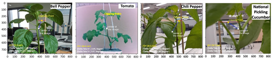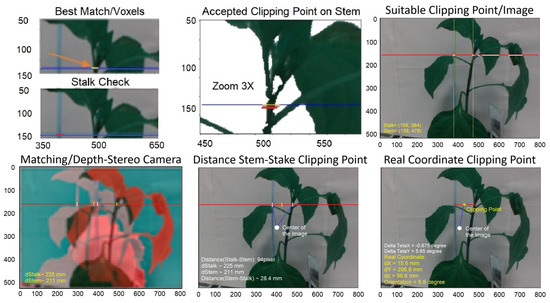 A robotic clipping solution requires two main components: a machine vision unit that analyzes an image of a seedling and identifies the clipping point and a mechatronic unit that performs the act of clipping. The focus of this paper is on the machine vision unit that replicates human visual and cognitive functionalities to understand an image and identify a suitable clipping point along the seedling’s main stem for different types of vegetables, namely peppers, tomatoes, and cucumbers. In recent years, machine vision and various visual processing algorithms have seen significant advancements in agriculture-related applications [1]. These applications span a wide range of tasks, including spraying fertilizers and pesticides [2], plant detection and harvesting [3], grafting, irrigation, automatic grading [4], plant disease detection [5], ripe fruit identification [6], crop-weed classification [7], and cutting or pruning [8].