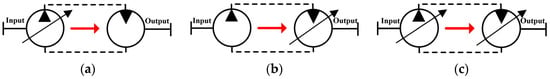 The CLHS can control the displacement using the pump or motor. According to the difference in the regulation mode, there are three typical structural forms of the CLHS, as shown in Figure 3.