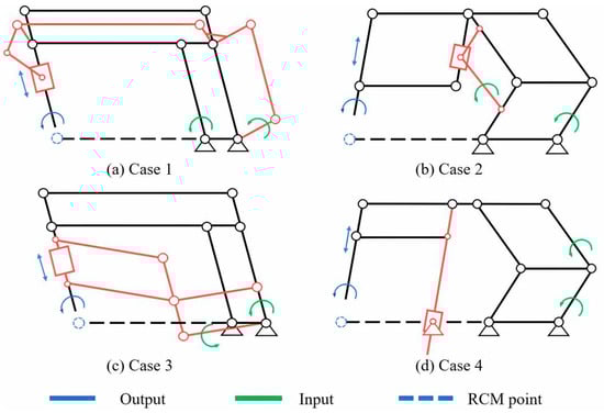 Combined with the previous analysis, Case 4 was chosen to synthesize the proposed mechanism. In addition, some other comparable 1R1T parallelogram mechanisms are available as alternatives but will not be discussed in detail here.