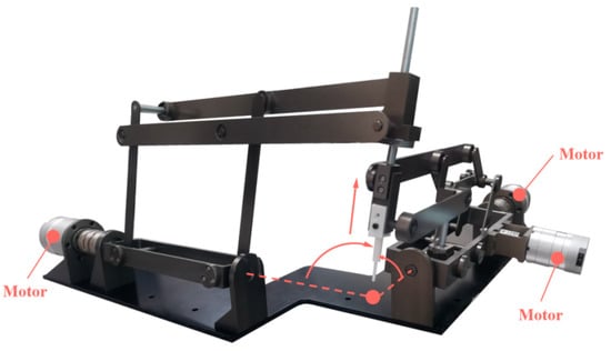 To avoid the inherent deficiencies of the parallelogram mechanism, other types of novel RCM mechanisms have been proposed. Liu et al. proposed an RCM mechanism based on dual-triangular linkage [24]. He et al. designed a novel type synthesis method based on the coupled motion of two DOF to obtain new virtual center of motion (VCM) mechanisms, and a series of RCM mechanisms were obtained by combining different configurations of VCM mechanisms [27]. Additionally, as an alternative to the conventional drive method, cable transmission is also an effective solution capable of realizing the translational DOF with actuators mounted on the base [28,29].