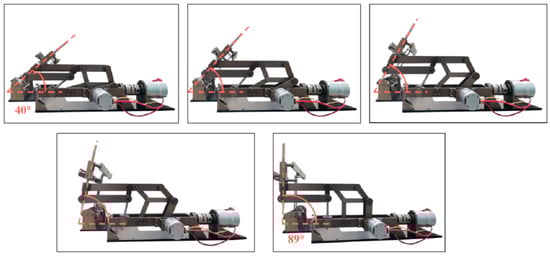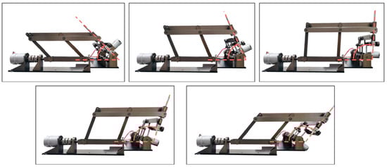 The motions of the mechanism were validated on the prototype and the results are shown in Figure 14, Figure 15 and Figure 16. Figure 14 demonstrates the translational motion of the 1R1T mechanism. Figure 15 demonstrates the rotational motion of the 1R1T mechanism with a range from 40° to 89°, which satisfies the required workspace of the 1R1T planar mechanism. Figure 16 illustrates the rotational motion of the 1R mechanism. The results above show that the prototype has RCM and can meet the requirements of its workspace. Future research will further optimize the mechanical structure and control algorithm to improve the accuracy of the prototype.