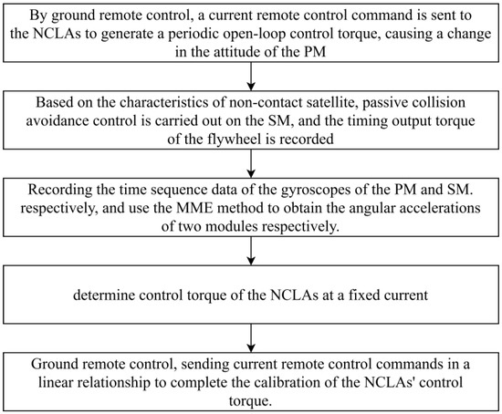 The main steps of calibration are to call the gyroscope angular velocity time sequence data of the PM and SM, respectively, combining the minimum model error estimation method to obtain the angular acceleration of each module, and obtain the timing sequence control torque of the NCLAs through the Kalman filter algorithm.