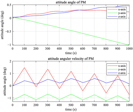 The PM adopts active control, with the orbit coordinate system as the reference coordinate system. The attitude kinematics model of the PM relative to the orbit system is:
