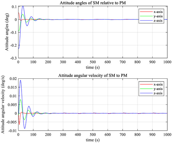 The SM is under passive control, with the PM coordinate system as the reference coordinate system. When the PM maneuvers, the SM tracks the PM’s attitude and rotates around the PM. The attitude kinematics and dynamics model of the SM relative to the PM is similar to the aforementioned equation: