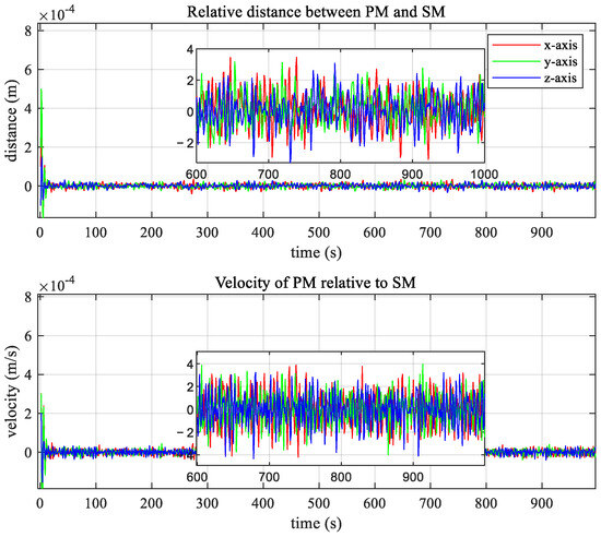 Figure 7 shows that the object studied in our article is the cooperative movement of two modules of the twin-body satellite rather than the traditional multi-star formation flight, yet in our design, the PM is the reference, which installs the star-sensors and gyroscopes as the measurement references. According to the measurement information, PM moving first is realized through the NCLAs control torque generated by the coil of the NCLAs and the magnetic steel. The control system of the SM is basically the same as traditional satellite control system, and the attitude of the PM is used as the reference for tracking control. Therefore, the active control loop for the attitude of the PM is used to generate periodic open-loop control torque, causing changes in the attitude of the PM and recording the timing data of the PM gyroscope. In order to enable the PM’s dynamic model to have fast response capability and strong robustness, the design of the control torque in this article adopts the PD control, which is widely used in engineering [27].