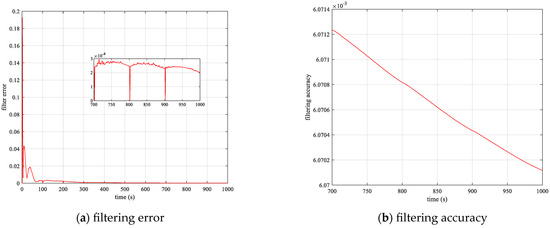Under the same conditions, the smaller Er(tk) is, the better the filtering effect is. Starting from the filtering stability moment tk0, k1 consecutive sampling points are taken for analysis. The filtering accuracy is defined as: