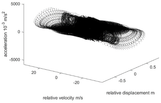 For nonparametric modeling of the nonlinear interaction between and , the system is excited with a chirp between at a duration of . The cross-section of the acceleration surface along the direction of the relative velocity between and is presented in Figure 6b, and for polynomial parameterizations of the data, the coefficients of the polynomial functions are sorted in Table 4.