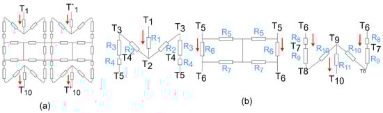 To simplify the model-solving process, the thermal resistance network model has been divided into three parts (see Figure 2b). This simplifies the analysis and reduces the model’s complexity.