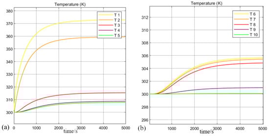 Thermal resistance network model-solving results. (a) T1–T5. (b) T6–T10.