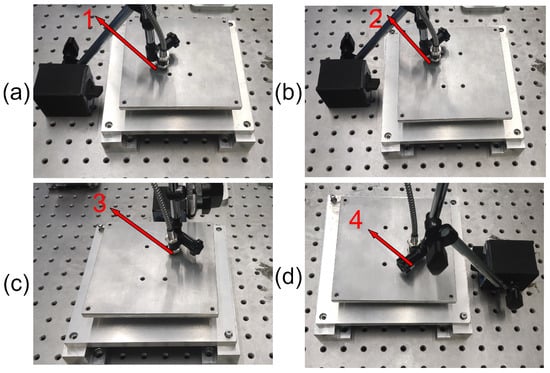 Experimental manipulation. (a) experimental measurement point No. 1. (b) experimental measurement point No. 2. (c) experimental measurement point No. 3. (d) experimental measurement point No. 4.