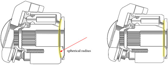 Similarly, in order to compare the influence of different spherical radii on valve distribution characteristics, if the original parameters are maintained, the dividing circle of the valve plate and the top window of the nine pistons of the cylinder block will be different in the modeling process, so it is necessary to modify the dividing circle radius of the valve plate and keep it concentric. The modified parameters of each model are shown in Table 3. It can be seen that with the change in spherical radius, the spherical center distance of the valve plate changes.