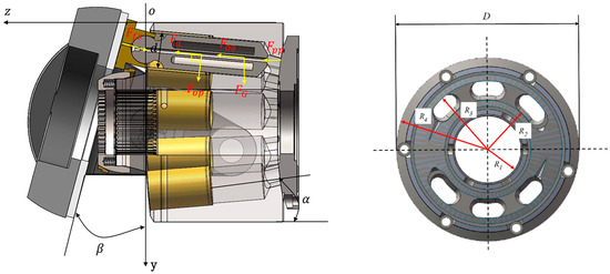 The reactive force F0 of the liquid in the spherical gap of the spherical valve train can be decomposed into the axial force component Foz along the z-axis (cylinder axis) and the radial force component For perpendicular to the z-axis, as shown in Figure 3.