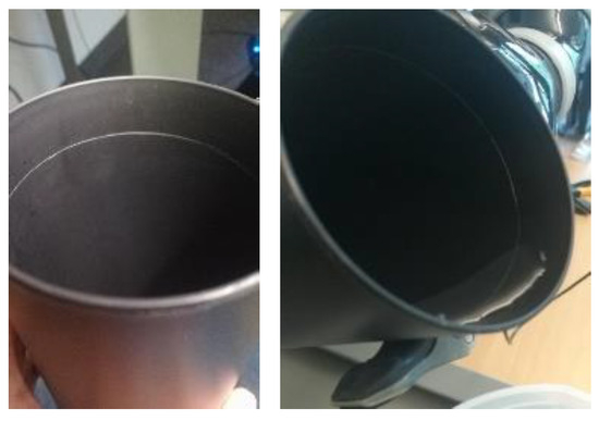 The decision was marked as a failure (0) if the liquid spilled out of the opening in the coffee lid or the liquid was below the level of the targeted range. If the liquid did not spill out of the opening, but spilled when the lid was removed, the trial was marked with a 0.5. A successful tilt is shown in Figure 4.
