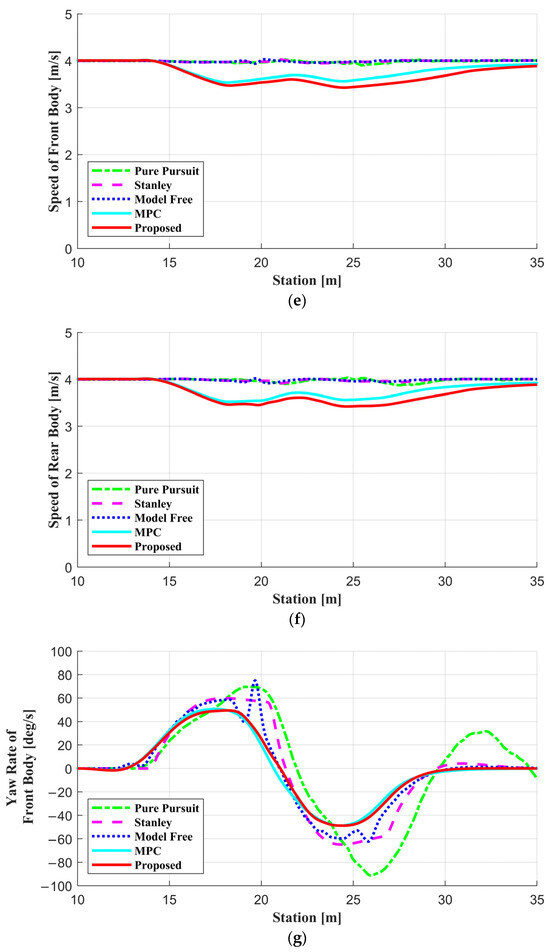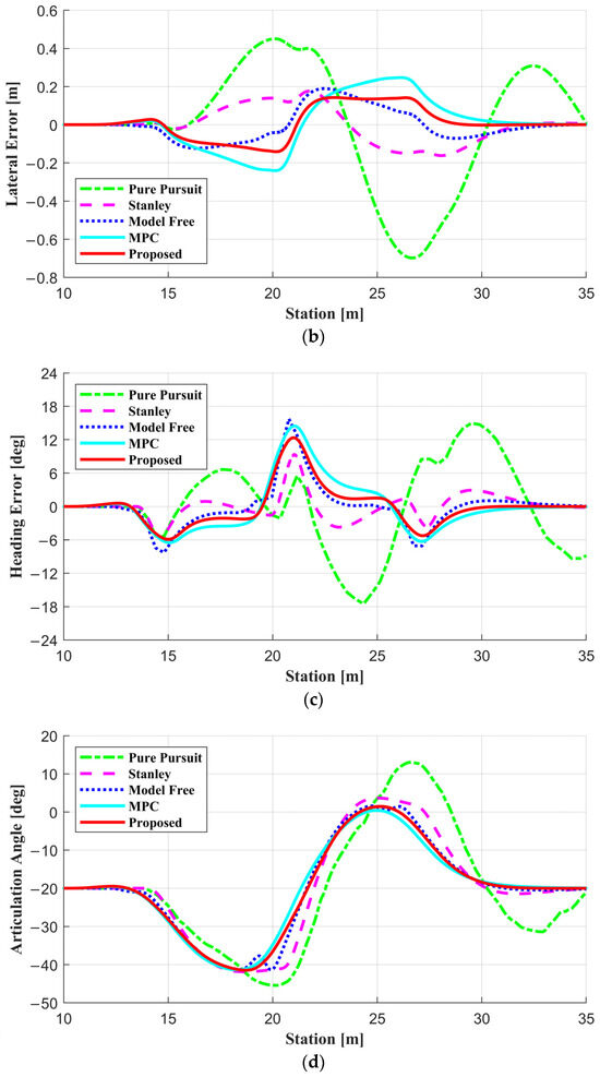 - The design of a reference tracking-based controller addresses the limitations of point tracking-based controllers and error dynamics defined for a fixed planned path, enabling the proposed controller to be applied to arbitrary desired paths.