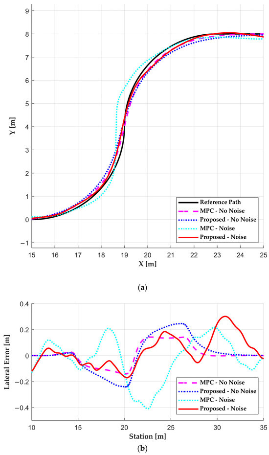 - Hang, P.; Chen, X.; Luo, F. LPV/H∞ controller design for path tracking of autonomous ground vehicles through four-wheel steering and direct yaw-moment control. Int. J. Automot. Technol. 2019, 20, 679–691. [Google Scholar] [CrossRef]
