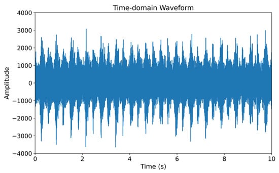 The occurrence of abnormal noise in overrunning spring clutches within lifting systems manifests as periodic sounds at low speeds. Typical abnormal sound frequencies were obtained through a sound sensor, and MATLAB R2022b was utilized for audio visualization and processing. The sampling frequency was set to 8000 Hz, and the time-domain waveform of the abnormal noise is depicted in Figure 2.