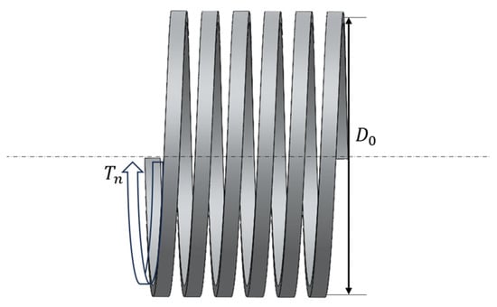 represents the torsional moment of the coil spring, denotes the length of the coil spring, stands for the mean diameter of the coil spring, represents the material elastic modulus, denotes the cross-sectional moment of inertia of the coil spring wire, and signifies the number of coil turns. It is evident that is directly proportional to .