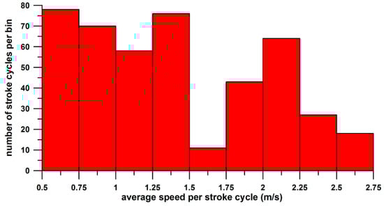 Distribution of the analysed stroke cycles across the range of the average speed per stroke cycle.