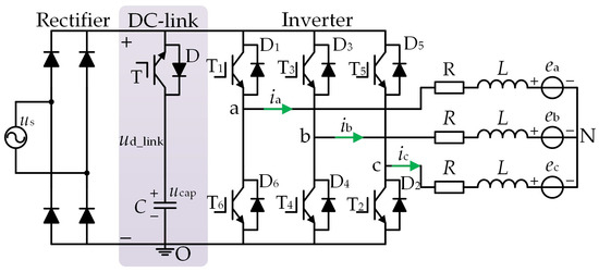 - Son, Y.; Ha, J. Discontinuous Grid Current Control of Motor Drive System with Single-Phase Diode Rectifier and Small DC-Link Capacitor. IEEE Trans. Power Electron. 2017, 32, 1324–1334. [Google Scholar] [CrossRef]