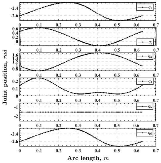 Therefore, let be mm and be rad according to experiment experience. Finally, the solutions are presented in Figure 4, where the position function with respect to the arc length of each joint is given. In addition, the MR algorithm produces a heterogeneous mesh to minimize the path discretization error.