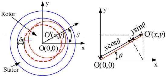 where δ0 is the length of the single-sided air gap before eccentricity; θ is the angle between eccentricity and the shaft; and x and y are the displacement components of the rotor in the coordinate system, respectively.