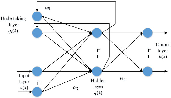 Figure 3 illustrates the schematic diagram of the ENN. Standard neural networks consist of an input layer u(k), an output layer h(k), and a hidden layer q(k). In contrast, the ENN introduces an additional undertaking layer qc(k) built upon the existing hidden layer. This layer receives feedback signals from the hidden layer, with each hidden layer node connected to a corresponding node in the context layer. The role of the undertaking layer is to incorporate memory connections, allowing the previous time step’s hidden layer state to be combined with the current network input as the input to the hidden layer, effectively providing state feedback. This mechanism aids in enhancing the network’s ability to handle variables that change over time, thereby improving its robustness.