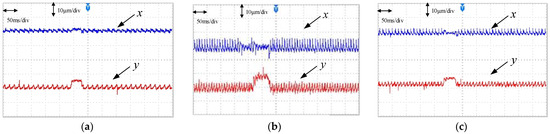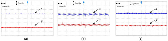 Figure 11 shows the displacement curves of the rotor during normal motor operation. It can be observed that the fluctuations of the rotor in the x-axis and y-axis directions were relatively small, indicating the effective operation of the motor suspension control system at this time. Overall, the values measured by the sensor were the smoothest, with fluctuations within 0.5 μm, followed by the WOA-ENN with fluctuations within 1 μm and ENN with fluctuations reaching up to 4 μm. The WOA-ENN exhibited smaller fluctuations and lower errors compared to ENN, indicating its accuracy and the effectiveness of algorithm optimization.