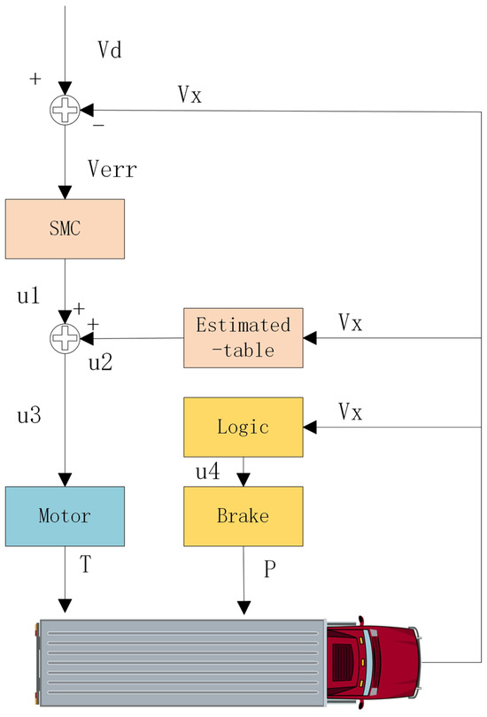 Using the sliding mode speed controller from Section 3.3, as shown in (10), the vehicle control process is as shown in Figure 6.