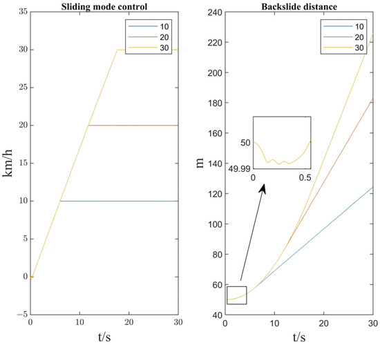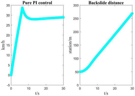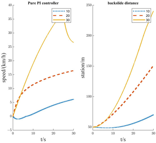 As shown in Figure 17, it can be seen that the pure PI controller is not able to respond well to the vehicle speed demand due to the change in gradient and mass and has a large backward skidding distance.