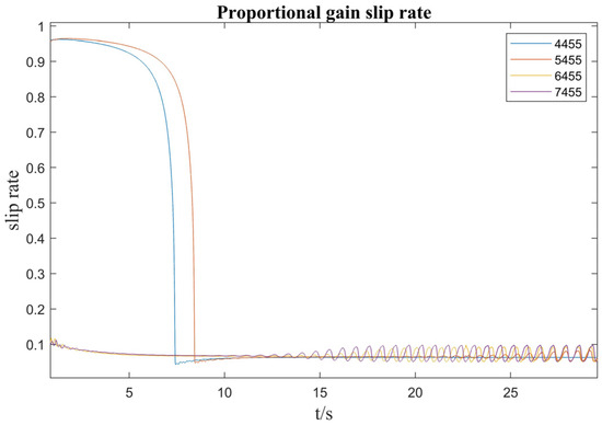 The slip rates for both the medium proportional gain and sliding mode control methods for ramp start tracking speed are shown in Figure 15 and Figure 16.