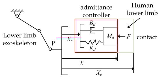 The second-order “mass–spring–damping” lower limb exoskeleton impedance control model is shown in Figure 8.